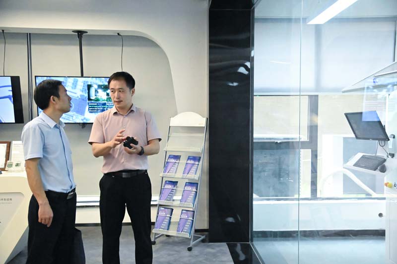 楊宏林首先對賀茂云領導一行來司調研表示熱烈的歡迎,隨后帶領領導一行參觀了公司的展廳,詳細介紹了公司近年來在科研成果、核心技術、主營業務,人才團隊等方面取得的進展。