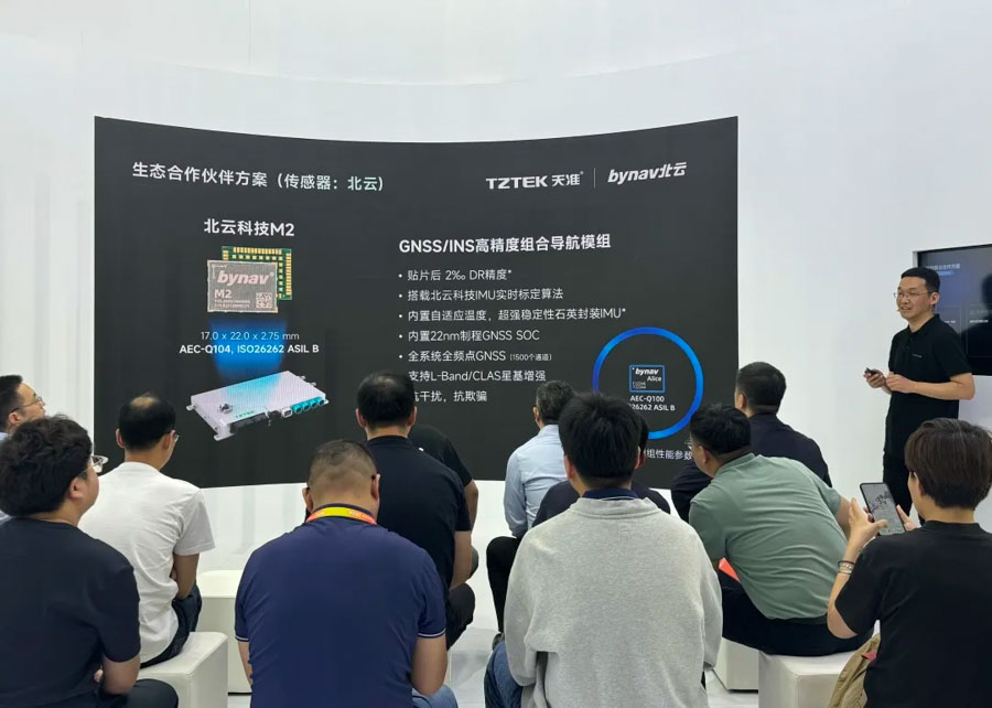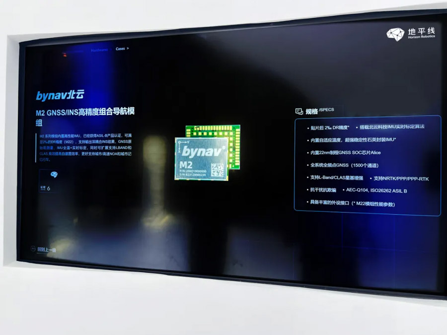 北云科技作為地平線的生態戰略合作伙伴,M2系列車規級GNSS/INS高精度組合導航模組作為征程6系列推薦應用方案,在地平線展臺展出。