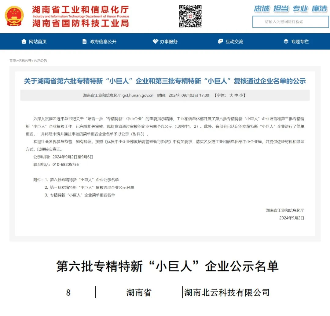 近日,國家工信部發布了第六批專精特新“小巨人”企業名單,北云科技成功入榜,獲評國家級專精特新“小巨人”企業。