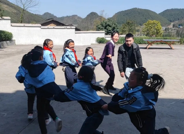 活動(dòng)進(jìn)行到最后,志愿者們將所有的小朋友們聚集在一起玩游戲,大家有的玩老鷹捉小雞,有的玩數(shù)字抱團(tuán),有的玩丟手絹,玩的不亦樂(lè)乎,到了最精彩的才藝展示環(huán)節(jié),志愿者們?yōu)楝F(xiàn)場(chǎng)的小朋友們表演跳舞、唱歌、模仿動(dòng)物、打軍體拳...此起彼伏的歡笑聲與鼓掌聲在長(zhǎng)秧小學(xué)的操場(chǎng)上回蕩。