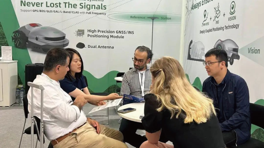 During the exhibition, Bynav demonstrated high-precision positioning solution for intelligent lawnmower robots, which is based on GNSS+IMU+VISION positioning technology. We also showcased a prototype of an intelligent lawnmower robot developed using this solution.