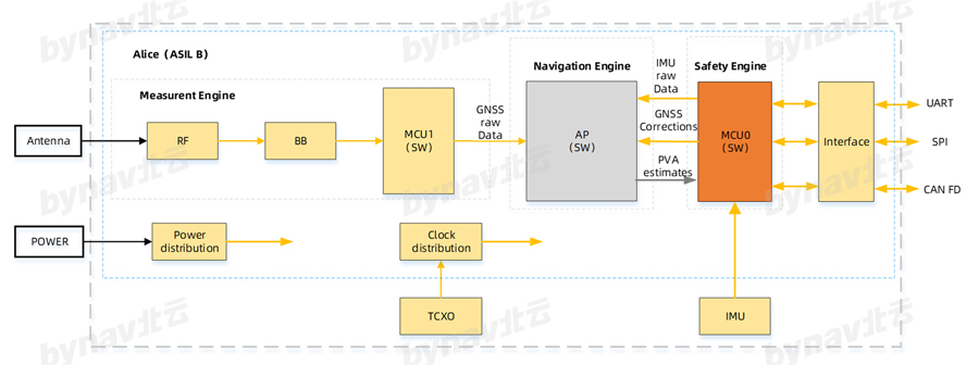 Bynav's Alice High-precision Positioning GNSS SOC leverages Bynav's extensive experience in large-scale automotive applications and incorporates direct feedback gained from collaborative development with OEMs. Additionally, the development process received guidance from functional safety experts at TÜV Rheinland, leading to the establishment of a systematic functional safety architecture for the Alice SOC, covering Measurement Engine, Navigation Engine, and Safety Engine.