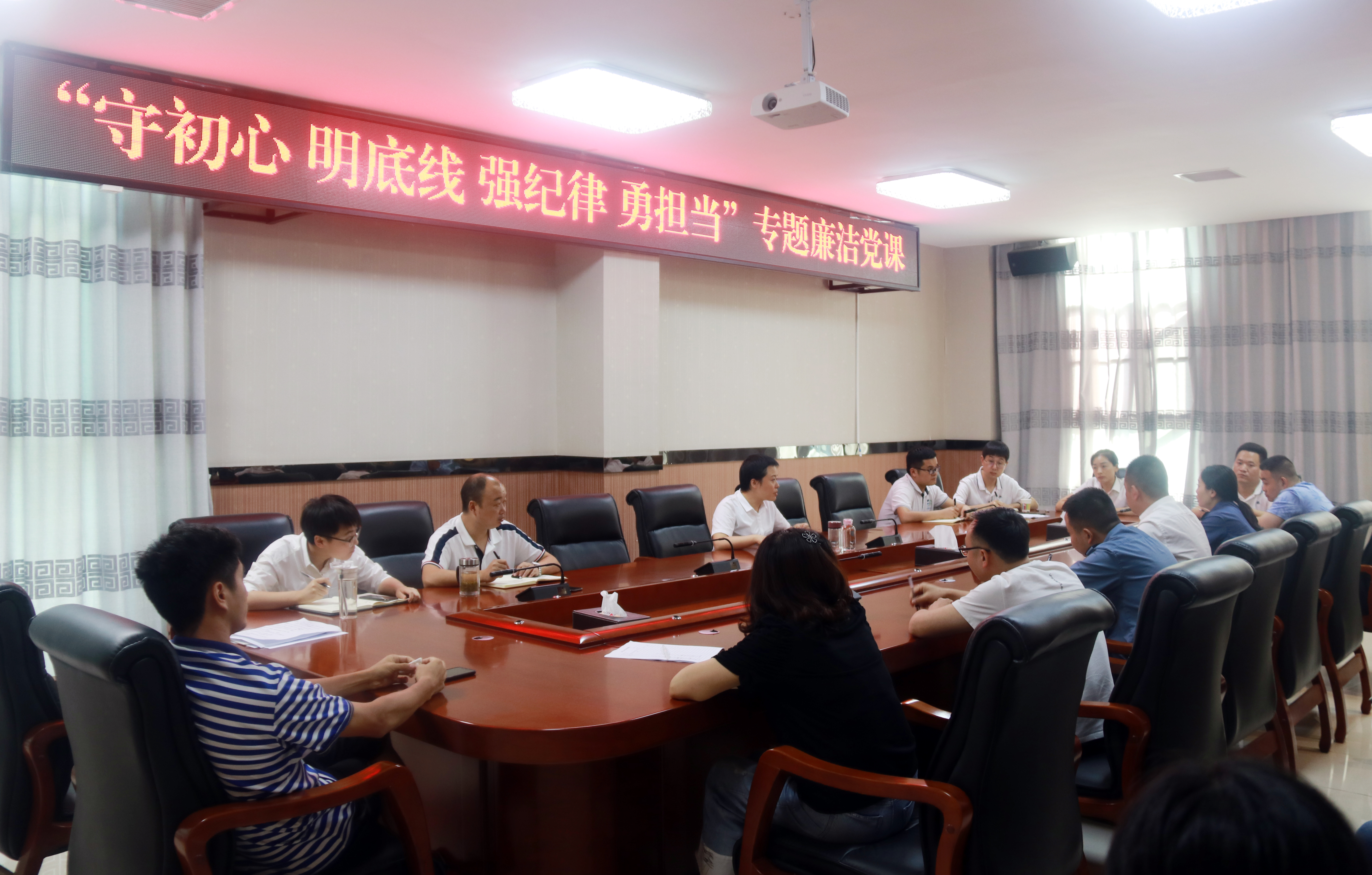 為慶祝建黨99周年,不斷鍛造忠誠(chéng)、干凈、有擔(dān)當(dāng)?shù)募o(jì)檢監(jiān)察干部隊(duì)伍,結(jié)合集團(tuán)公司《關(guān)于轉(zhuǎn)發(fā)〈關(guān)于在省屬企業(yè)開展廉潔教育月活動(dòng)的通知〉的通知》(川鐵投黨發(fā)〔2020〕70號(hào))文件“五個(gè)一”活動(dòng)要求,7月14日,公司黨委委員、紀(jì)委書記田余香以《守初心 明底線 強(qiáng)紀(jì)律 勇?lián)?dāng)》為題,為公司黨員干部、紀(jì)檢監(jiān)察干部24人上廉潔黨課。