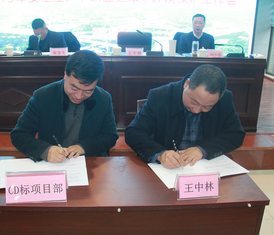 會(huì)上,公司黨委書記、董事長(zhǎng)王中林分別與施工單位、監(jiān)理單位簽訂了《敘古公司2019年度安全生產(chǎn)、職業(yè)健康、環(huán)境保護(hù)目標(biāo)責(zé)任書》。