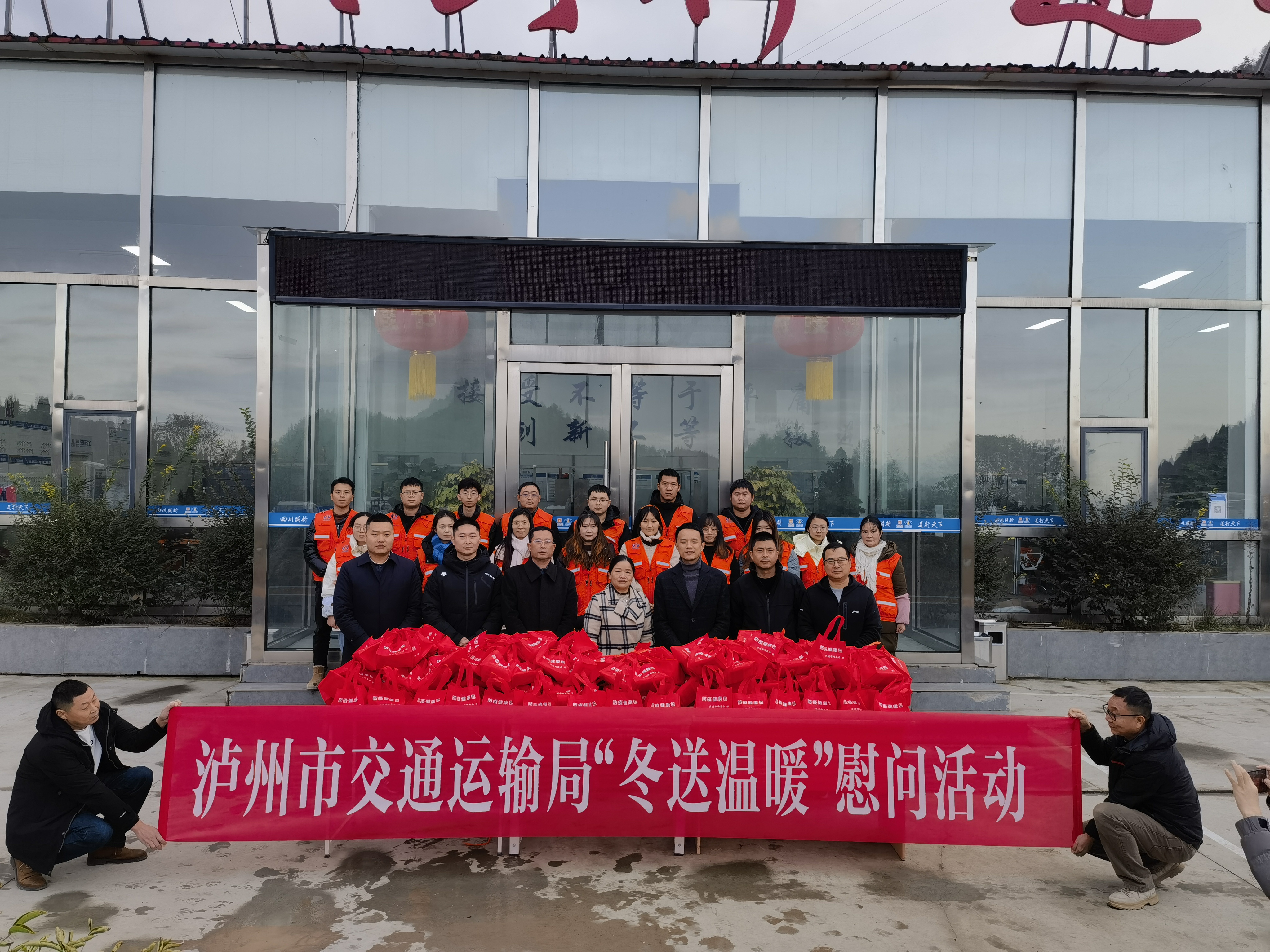 瀘州市交通運輸局、兩高辦高速公路發(fā)展部相關(guān)人員,古藺縣兩高辦主任宋杰,公司副總經(jīng)理潘昱行,公司工程、運營部門相關(guān)工作人員參與慰問活動。