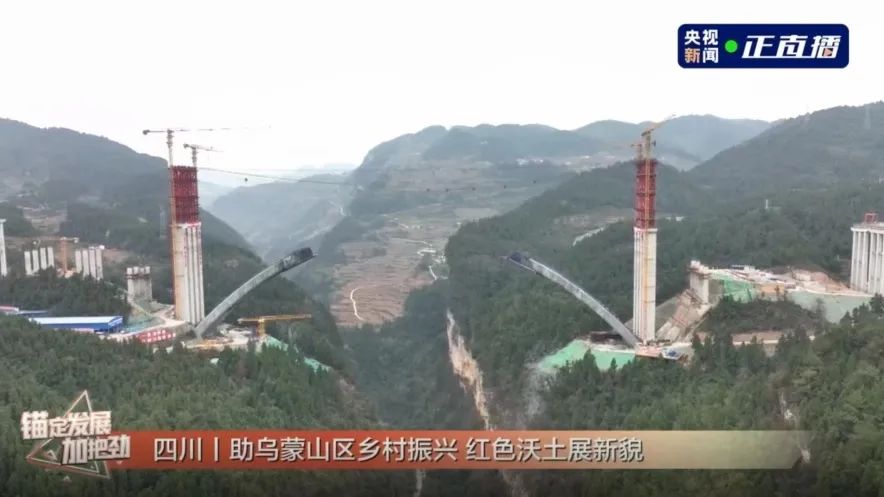 央視新聞《錨定發(fā)展加把勁 向春而行開新局》特別節(jié)目現(xiàn)場直播“世界第一跨”——古金高速水落河特大橋