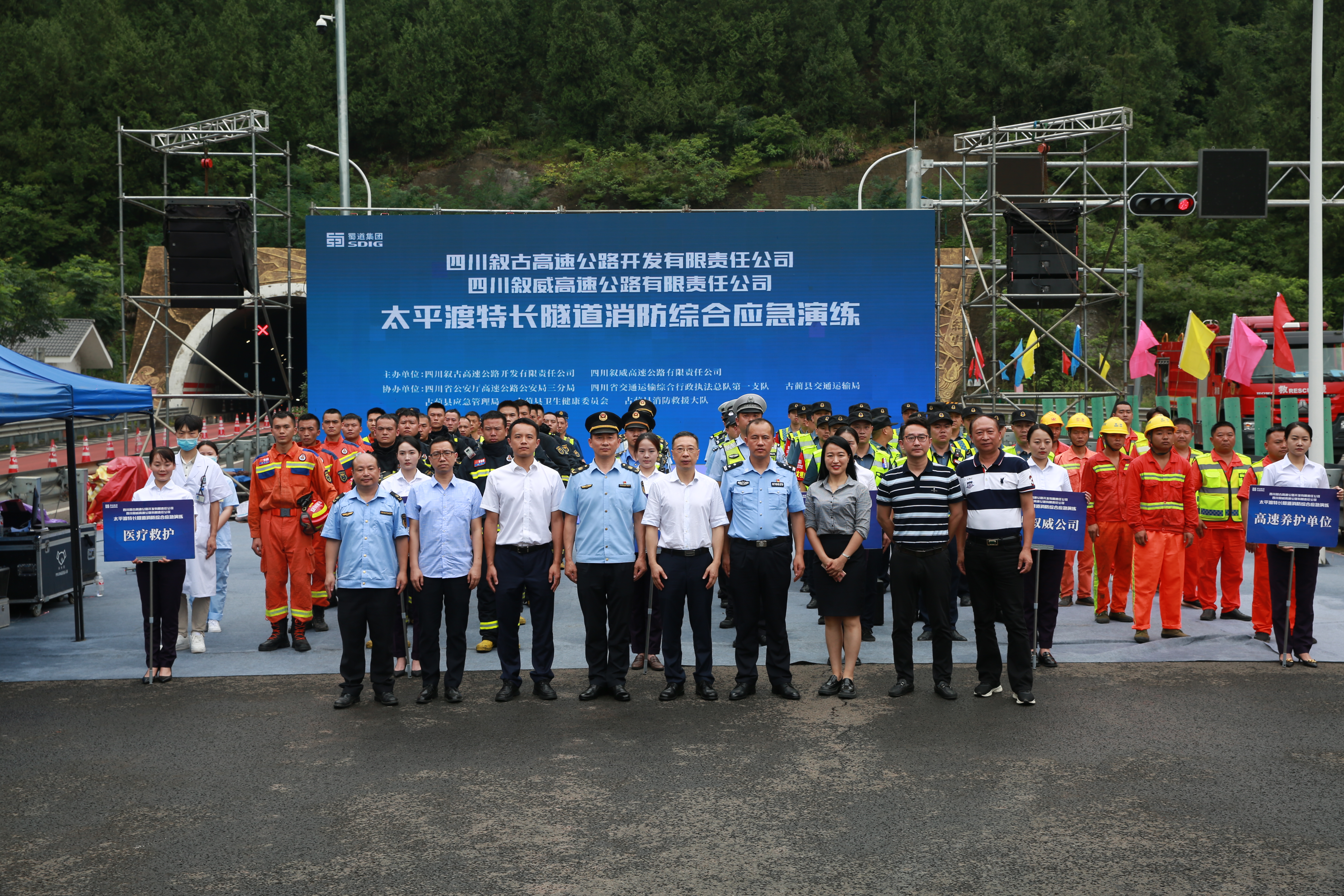 6月29日,由敘古敘威公司主辦,四川省公安廳高速公路三分局、四川省交通運(yùn)輸綜合行政執(zhí)法總隊(duì)第一支隊(duì)、古藺縣應(yīng)急管理局、古藺縣交通運(yùn)輸局、古藺縣衛(wèi)生健康委員會(huì)及古藺縣消防救援大隊(duì)協(xié)辦的S80古宜高速公路太平渡隧道消防綜合應(yīng)急演練順利舉行。敘古敘威公司黨委書記、董事長、總經(jīng)理劉小波出席活動(dòng)并擔(dān)任演練總指揮。四川省交通運(yùn)輸綜合行政執(zhí)法總隊(duì)第一支隊(duì)副支隊(duì)長羅勇、四川省公安廳高速公路三分局案偵大隊(duì)大隊(duì)長鄭付彬出席觀摩現(xiàn)場并作指導(dǎo)。