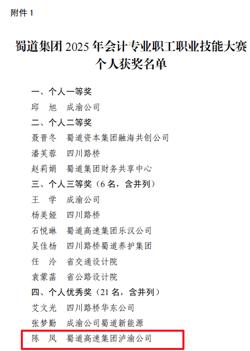 【喜報(bào)】瀘渝公司陳鳳榮獲蜀道集團(tuán)2025年會(huì)計(jì)專業(yè)職工職業(yè)技能大賽個(gè)人優(yōu)秀獎(jiǎng)