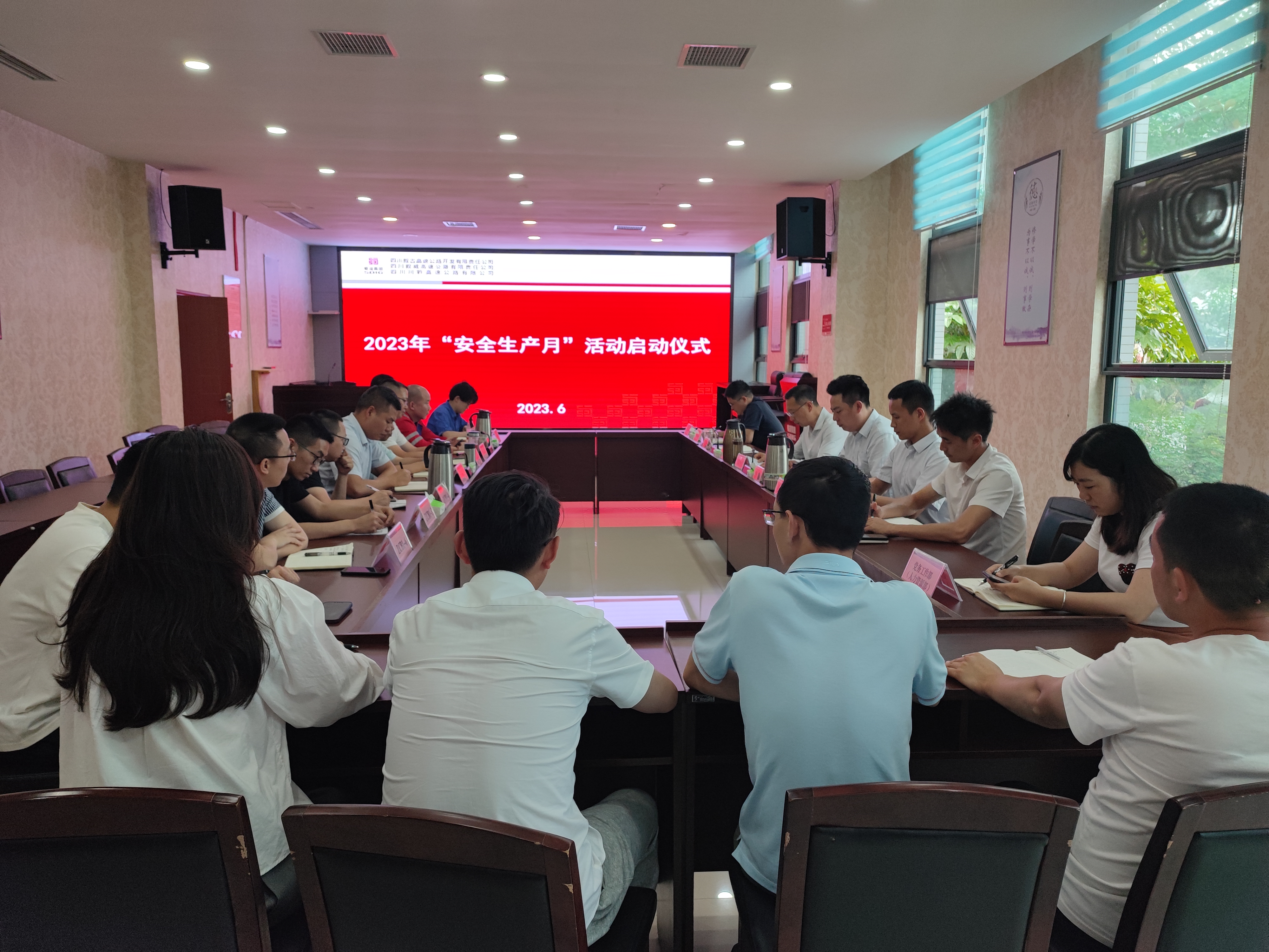公司安委會成員,安全環(huán)保部、工程管理部、觀文代表處在家員工,古金高速各項目部負責人共計20余人參加啟動儀式。