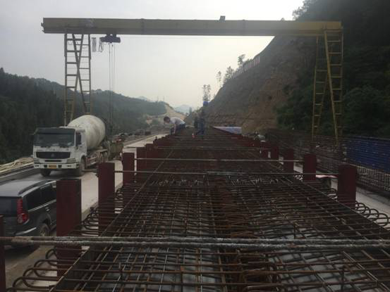 敘古高速公路后期控制性工程青龍臺(tái)大橋預(yù)制場(chǎng)首片T梁順利澆筑