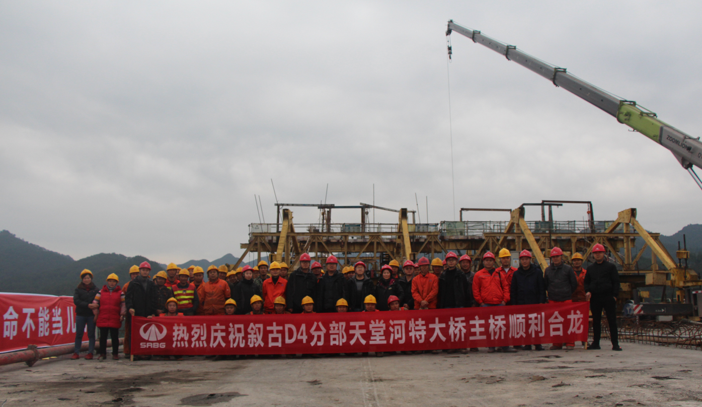 揮汗兩載云煙盡,天堂河跨巨龍來。2018年12月27日,作為敘古高速剩余在建項目三大重點控制性工程之一的天堂河特大橋左右幅順利合龍!由10#、11#主墩延伸開來的掛籃
