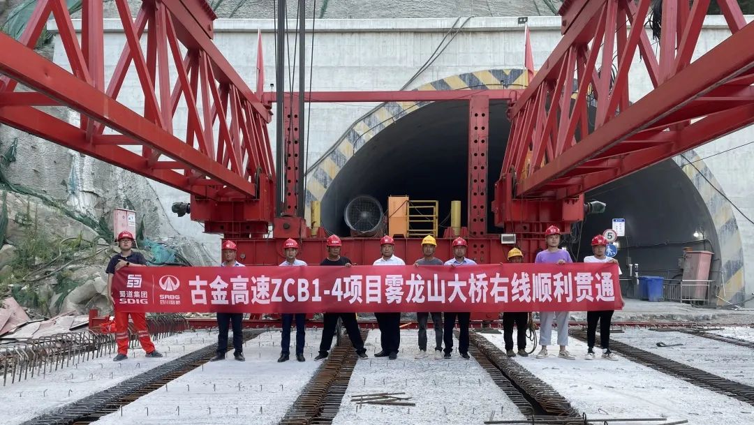 古金高速霧龍山大橋右幅順利貫通