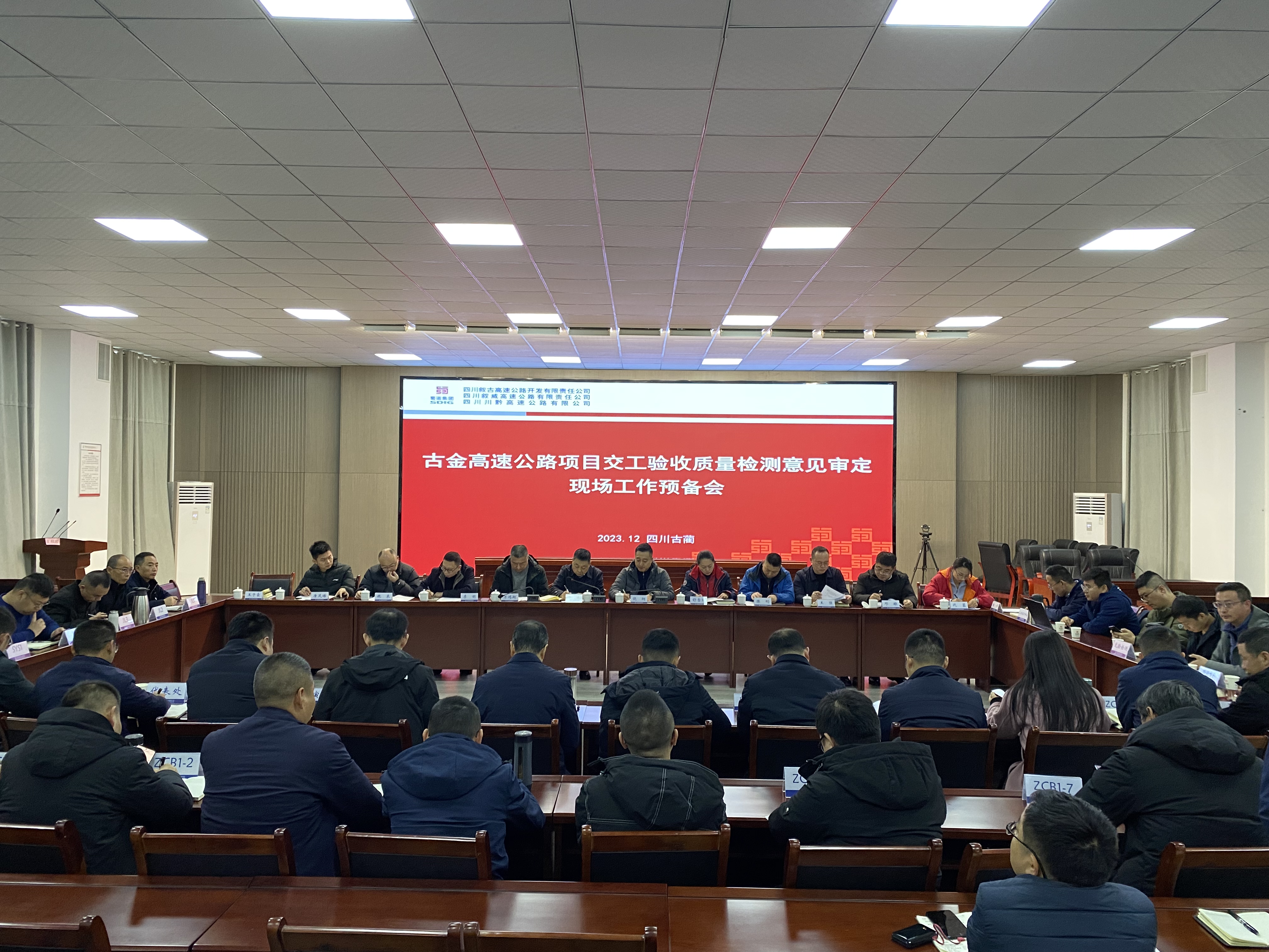 12月19日下午,四川省交通工程質(zhì)量監(jiān)督站在川黔公司監(jiān)控中心四樓會議室組織召開古金高速公路項(xiàng)目交工驗(yàn)收質(zhì)量檢測意見審定現(xiàn)場工作預(yù)備會。會議由省質(zhì)監(jiān)站黨委委員、副站長鄒南主持,省質(zhì)監(jiān)站、瀘州市交通運(yùn)輸局、瀘州市交通運(yùn)輸綜合執(zhí)法支隊(duì)、川黔公司和古金高速各參建單位相關(guān)人員參加會議。